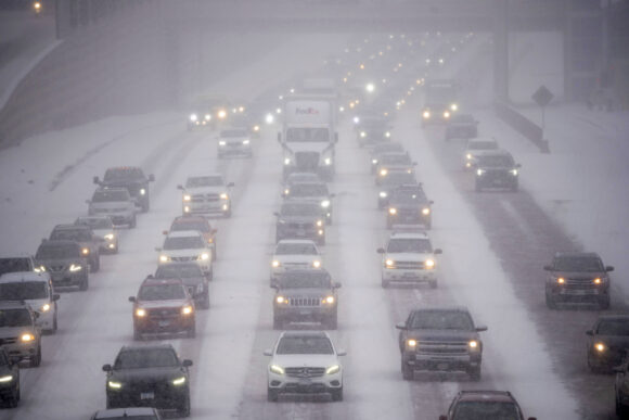 Photo: Rush hour traffic travels southbound on Interstate 35W in Minneapolis as a winter storm hit the Twin Cities Tuesday, Feb. 21, 2023. A monster winter storm took aim at the Upper Midwest on Tuesday, threatening to bring blizzard conditions, bitterly cold temperatures and 2 feet of snow in a three-day onslaught that could affect more than 40 million Americans. (Jeff Wheeler/Star Tribune via AP)