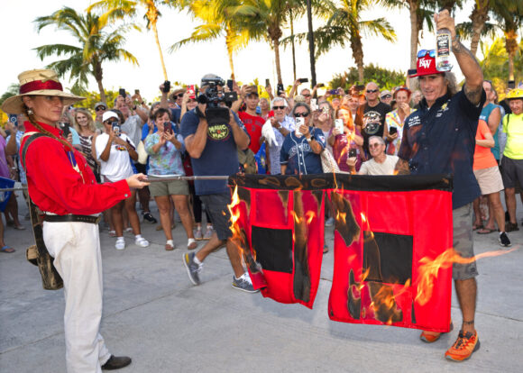 Several hundred Florida Keys residents gathered Wednesday to mark the season’s close by burning hurricane warning flags. The event featured a blast blown on a conch shell, a symbol of the Keys, and speakers recalled those affected by the 2022 hurricanes and expressed gratitude that the Keys were spared major impacts. Members of Key West’s ceremonial Conch Republic administration then doused the hurricane flags with rum and set them ablaze. The event was staged beside the U.S. Coast Guard Cutter Ingham, a maritime museum docked at Key West’s Truman Waterfront.
